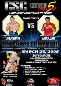 Charles Crenshaw won the King of The Ring, MMA Cruiserweight title in August of 2004. In December 2004, Charles won the WKA Eastern Regional MMA Cruiserweight Title. Both Titles were won via knockout.